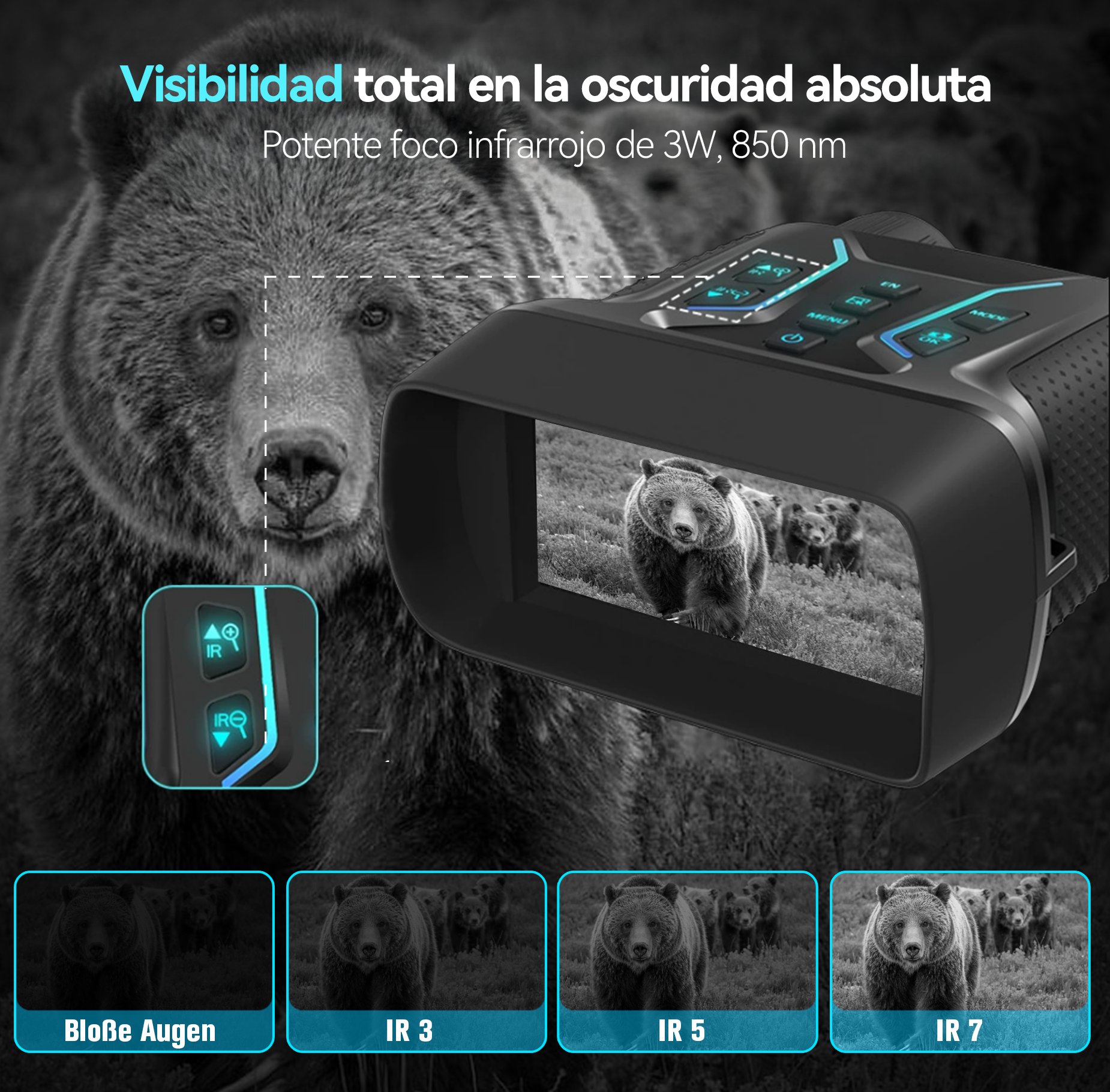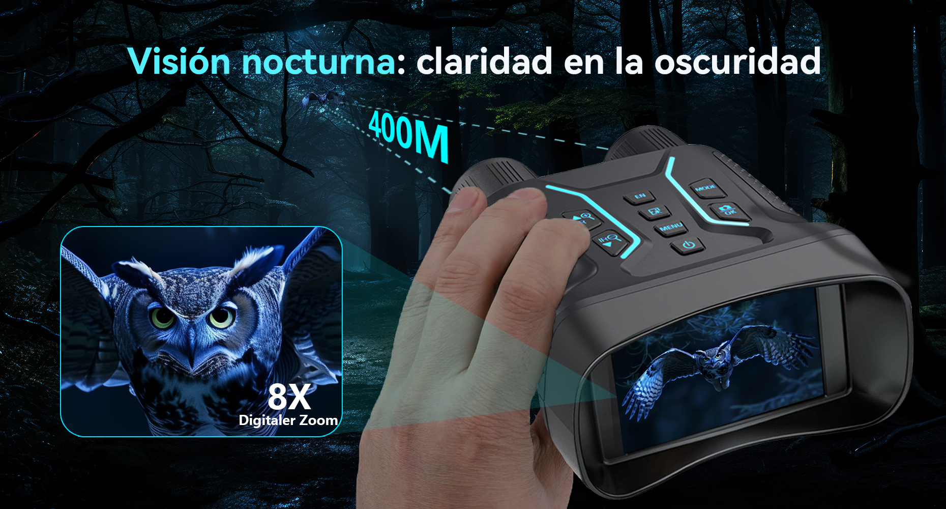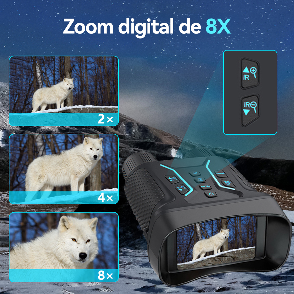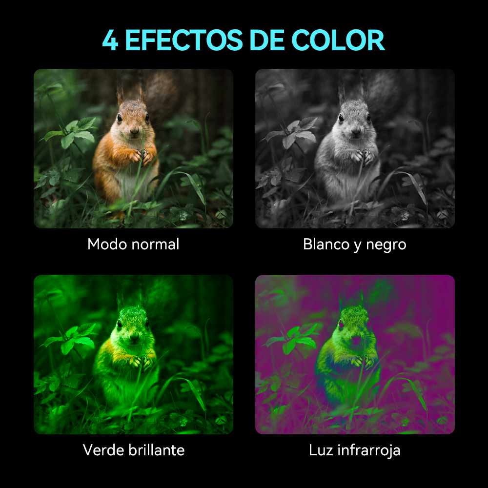 Este dispositivo de visión nocturna cuenta con un zoom digital de 8x que te permite capturar con claridad objetos distantes. Ya sea que estés realizando tareas de vigilancia u observando la vida silvestre, su función de aumento garantiza una visibilidad y amplificación mejoradas.